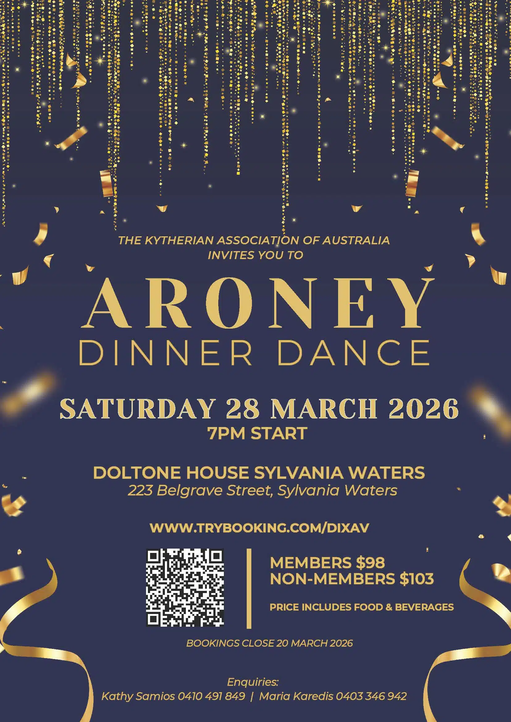 Enquiries: Kathy Samios 0410 491 849 | Maria Karedis 0403 346 942