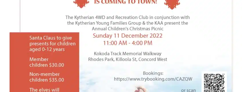 The Kytherian 4WD and Recreation Club in conjunction with the Kytherian Young Families Group & the KAA present the Annual Children’s Christmas Picnic