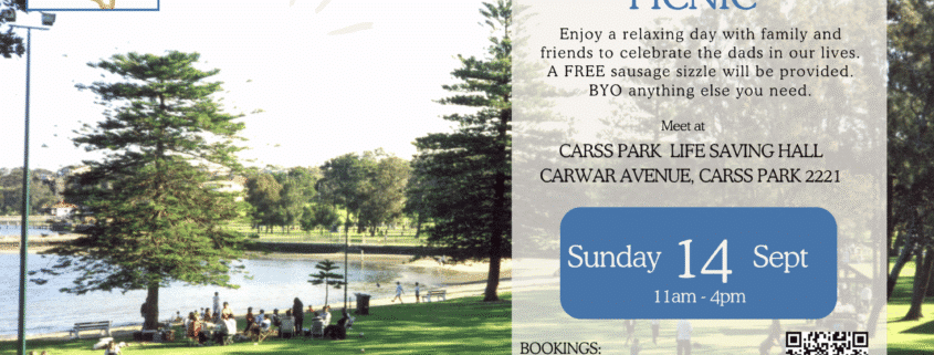 Enjoy a relaxing day with family and friends to celebrate the dads in our lives. A FREE sausage sizzle will be provided. BYO anything else you need.