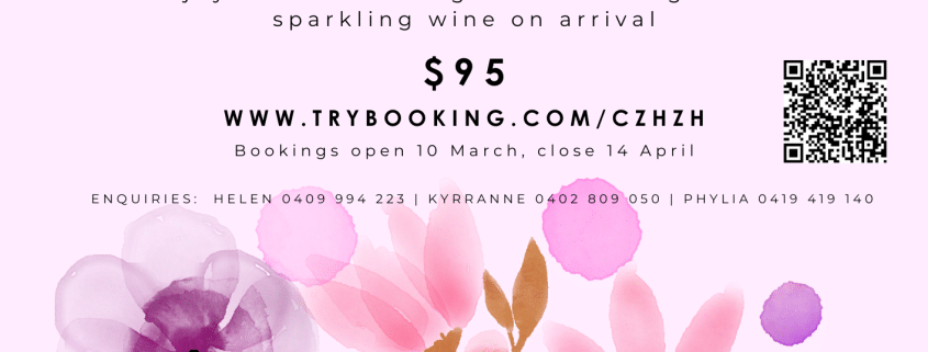 Bookings: www.trybooking.com/CZHZH (bookings close 14 April)